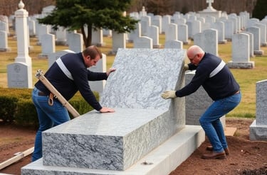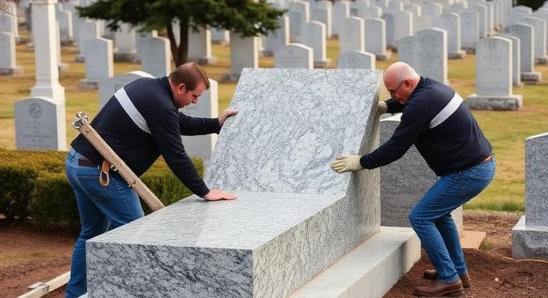 La pose comprend : préparation de la fondation, préparation de la cuve, installation du monument, scellement, nettoyage final, et toutes les démarches administratives nécessaires. Nous laissons l'emplacement propre et le monument prêt.